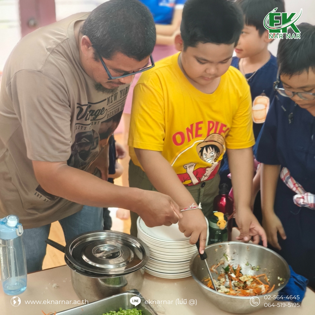 🍛 และกิจกรรมฐาน “อาหารไทย 4 ภาค” ที่ทั้งอร่อยและได้ความรู้ความหลากหลาย และภูมิปัญญาท้องถิ่นผ่านการลงมือทำจริง เมนูที่เด็ก ๆได้ลองปฏิบัติ ได้แก่ ไข่นกกระทาจากภาคกลาง ส้มตำจากภาคอีสาน น้ำพริกอ่องจากภาคเหนือ -ข้าวยำจากภาคใต้